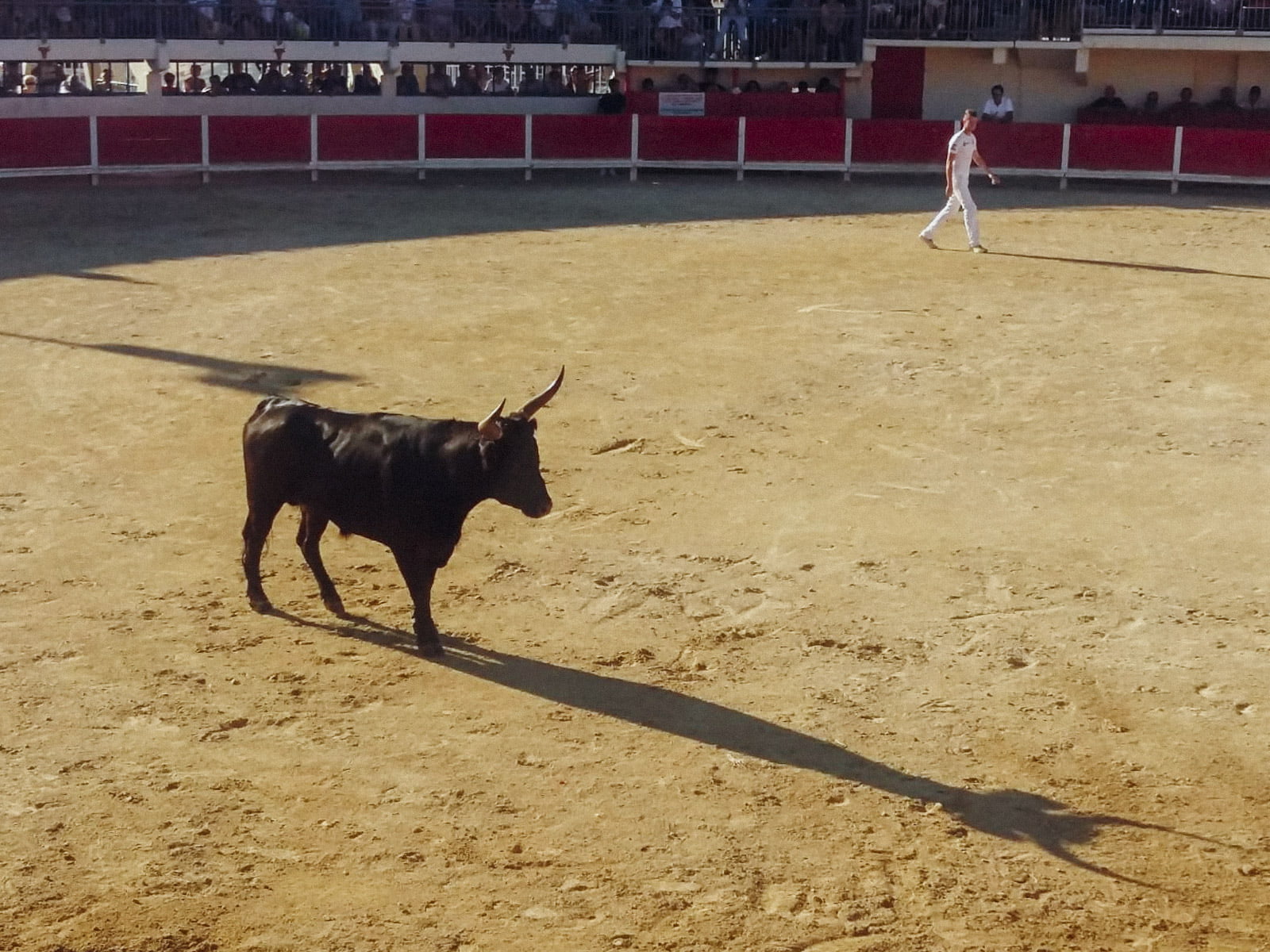 Najbardziej waleczne byki pędzą na Arenę, gdzie wystąpią w bezkrwawej corridzie course camarguaise. Naprzeciwko byka stanie nie torreador ze szpadą, ale dwie drużyny młodych i zwinnych chłopaków. Podbiegając do zwierzęcia, będą próbować zerwać mu kokardy zawieszone na rogach, a potem ujść przed bestią salwując się biegiem zakosami lub spektakularnym skokiem na trybuny.