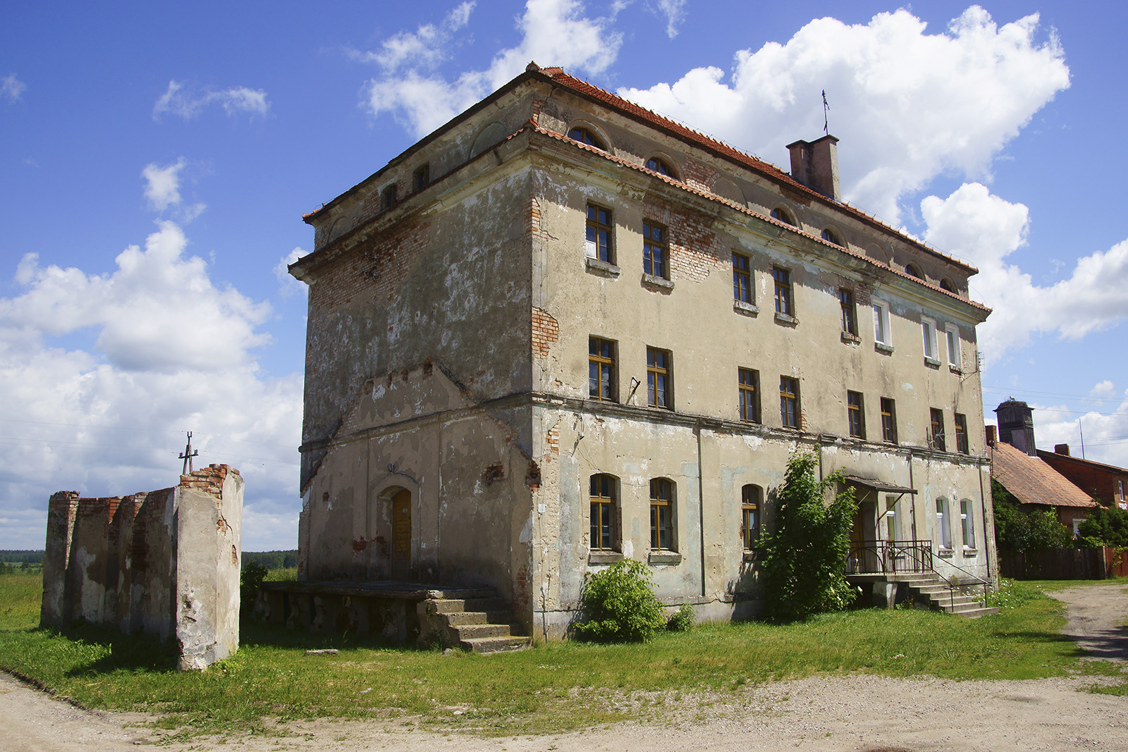 Samochód toczy się po morenowych pagórach, wyściełających krajobraz gdzie okiem sięgnąć. Pod kołami unosi się kurz – gorące powietrze zdążyło wysuszyć ostatnie ślady wczorajszej ulewy. Robi się pusto, niemal bezludnie. Miła odmiana po rojnym Węgorzewie, w którym byłam chwilę wcześniej. Wśród falującej zieloności przycupnęły gdzieniegdzie domy z cegły i kamienia polnego. Nad ich drzwiami wyryte są daty, wszystkie sprzed 1939 roku. Stare pruskie budownictwo, w którym spoiwem była glina zmieszana z jajkami i piachem, opiera się upływowi czasu.