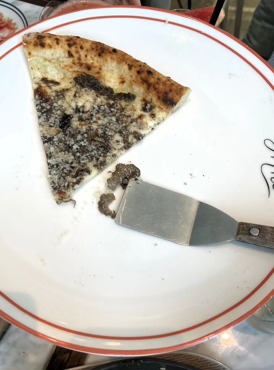 Włoska kuchnia ma w sobie przecież silny kobiecy pierwiastek. Przecież na Półwyspie Apenińskim mamma czy nonna potrafią pełnić rolę prawdziwej instytucji. Ten kobiecy charakter bez trudu odnajduję w serwowanych tu potrawach. W foccacii, buracie z pesto, carpaccio z buraka z sosem malinowym, krewetkach z masłem i czosnkiem, ravioli z grzybami czy wreszcie w uginającej się pod palcami pizzy z truflowymi płatkami. W przerwie pomiędzy daniami spoglądam przez okno. Widzę gdzieś w dole sunące po arteriach auta, a za wysokimi budynkami hałdy piachu nawiewanego z pustyni rozciągającej się tuż za linią miasta. Czuję się, jakbym posiadł zdolność przemieszczania się pomiędzy odległymi przestrzeniami. Na stole przede mną mam kwintesencję Włoch w wersji premium, za szklaną taflą widzę świat Wschodu oparty na zupełnie innych filarach niż europejski. Gdzie tak naprawdę się znajduję?