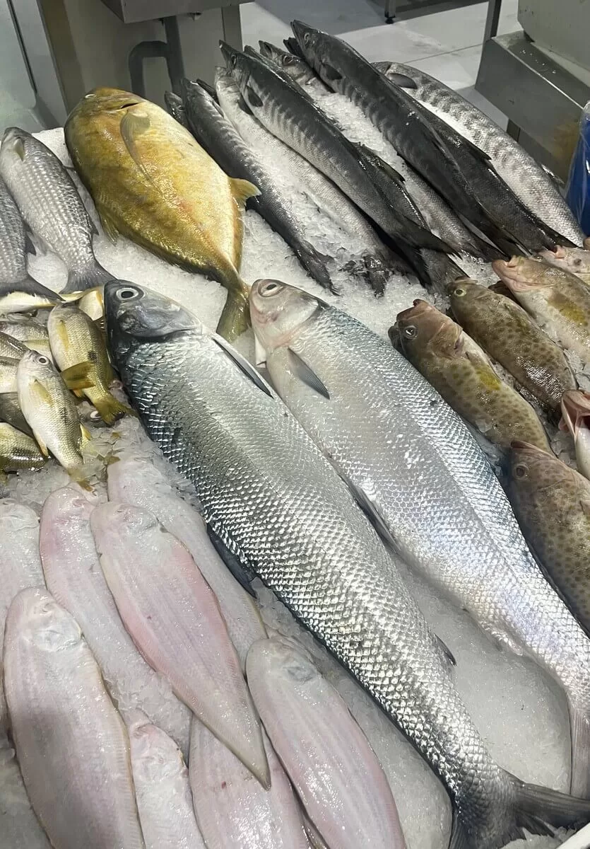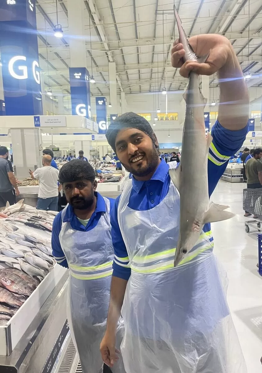 Kilka godzin wcześniej, na początku dnia, trafiłem do położonej przy nabrzeżu hali targowej „Watefront Market”. W spowitej chłodem sali o powierzchni 120 000 metrów kwadratowych każdego dnia dobija się targu, kontynuując tradycję sięgającą 1958 roku. Wtedy to w jednej z najstarszych dzielnic Dubaju uruchomiono Deira Fish Market. Dziś ma on nową lokalizację i rozbudowany dział warzywno-owocowy. Każdego miesiąca trafia tu ponad 800 tysięcy gości (zbliżona liczba odwiedzających pojawia się miesięcznie w paryskim Luwrze). Kupują ryby i owoce morza w ilości, której moja wyobraźnia nie jest w stanie objąć.
