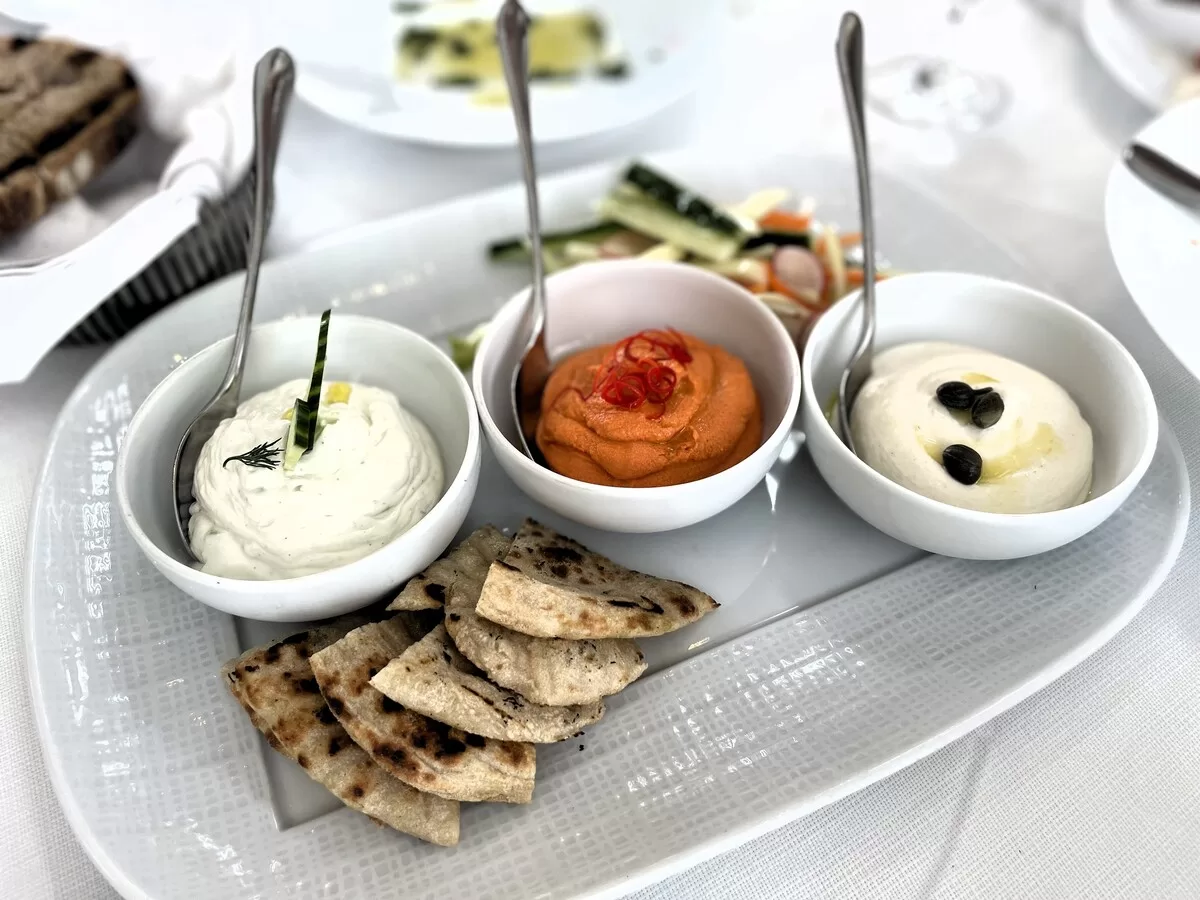 Prawdopodobnie to właśnie stąd pochodzi tuńczyk, którego próbuję kolejnego dnia w greckiej restauracji „Milos”. Przestronne, jasne wnętrze lokalu ma być w zamyśle wehikułem przenoszącym gości do Grecji. W spowitym splendorze Dubaju, ta Grecja przybiera jednak wyrafinowany kształt. Sztandarowe dania kuchni Hellady są dopracowane niczym jubilerskie kryształy. Szef kuchni z łatwością czyni z pasty z ikry i chleba (taramosalata), sałatki warzywnej podawanej z pitą (horiatiki) czy pasty z pieczonej papryki z serem feta małe pociski eksplodujące w ustach niewiarygodnym wprost bogactwem.