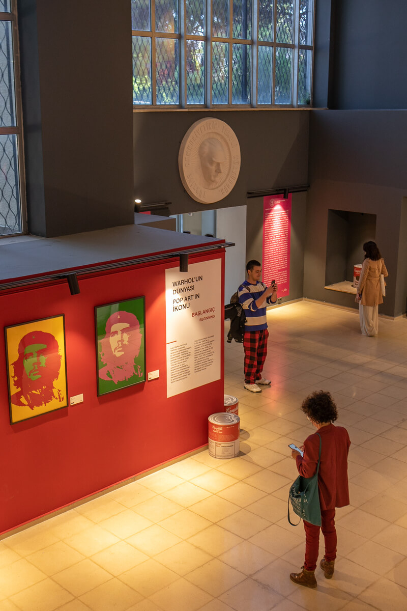 Picasso to jednak nie jedyne zachodnie nazwisko Kültür Yolu Festivali. Tuż obok odbywa się wystawa prac Andy’ego Warhola. Zanim jednak dojdę do wielkich kartonowych puszek zupy Cambell’s przy wejściu, mijam nowoczesną rzeźbę z profilem Mustafy Kemala Atatürka, twórcy Republiki Turcji. W Izmirze, podobnie jak w innych częściach kraju, podobizny Ojca Turków – zwielokrotnione w iście warholowskim stylu – widzę wszędzie. Są w barach, restauracjach, galeriach, witrynach sklepowych i oczywiście w postaci licznych pomników. Ale obok figury założyciela świeckiego państwa przechodzą mężczyźni w garniturach z reklamówkami, z których wystają rogi dywaników. Zaraz rozłożą je na trawie przed meczetem, który – tak się składa – stoi dokładnie między Picassem a Warholem. Popartowe twarze Marylin Monroe i Che Guevarry, wyeksponowane na wściekle żółtych, czerwonych i różowych ścianach, oglądam przy wtórze śpiewnego głosu muezzina. Tworzy to wymownie intrygujący turecki kontekst.
