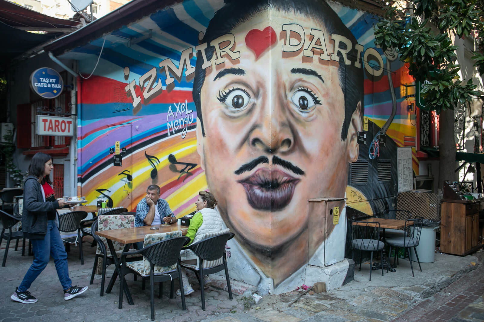 Patronem jednego z najbardziej znanych izmirskich zaułków, ulicy w dawnej dzielnicy żydowskiej, jest Dario Moreno. Kultowy turecki piosenkarz i aktor z lat 50. i 60. XX wieku spędził tu dzieciństwo i młodość. Był obywatelem świata i poliglotą. Śpiewał nie tylko po turecku, ale też francusku, grecku, hiszpańsku i włosku. Jego największy przebój nosi tytuł „Brigitte Bardot”, a na teledysku artysta tańczy z francuską gwiazdą. Dziś na upamiętniającej go ulicy działają bary, mury zdobią graffiti z podobizną Moreno, a na stołach namalowane są m.in. półnagie pin-up girls kąpiące się w kieliszku do szampana. Podobny klimat kolorowej barowej dzielnicy znajdziemy w Lizbonie, Wilnie czy Budapeszcie.