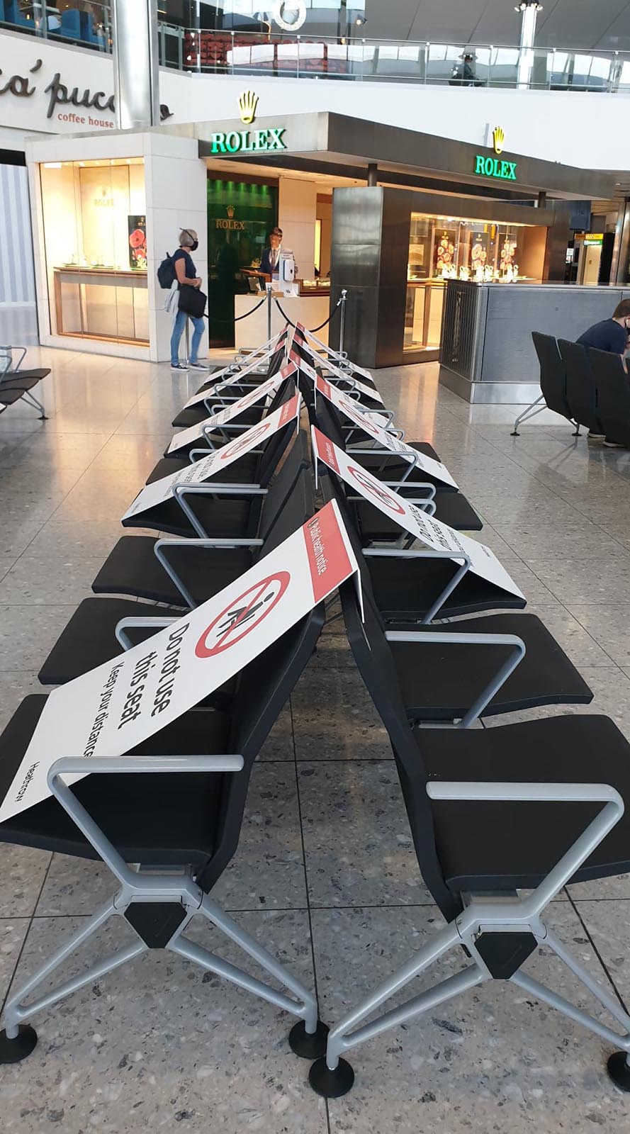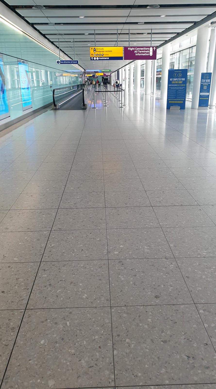 Co drugi fotel zablokowany kartonową planszą, wszyscy w maseczkach. Na kontroli paszportowej maszyna mnie nie przepuszcza. Nie wiem czy to pech, czy z powodu uciążliwego i pełnego detali formularza, który trzeba uzupełnić przed wylotem i pokazać jego QR kod urzędnikowi.