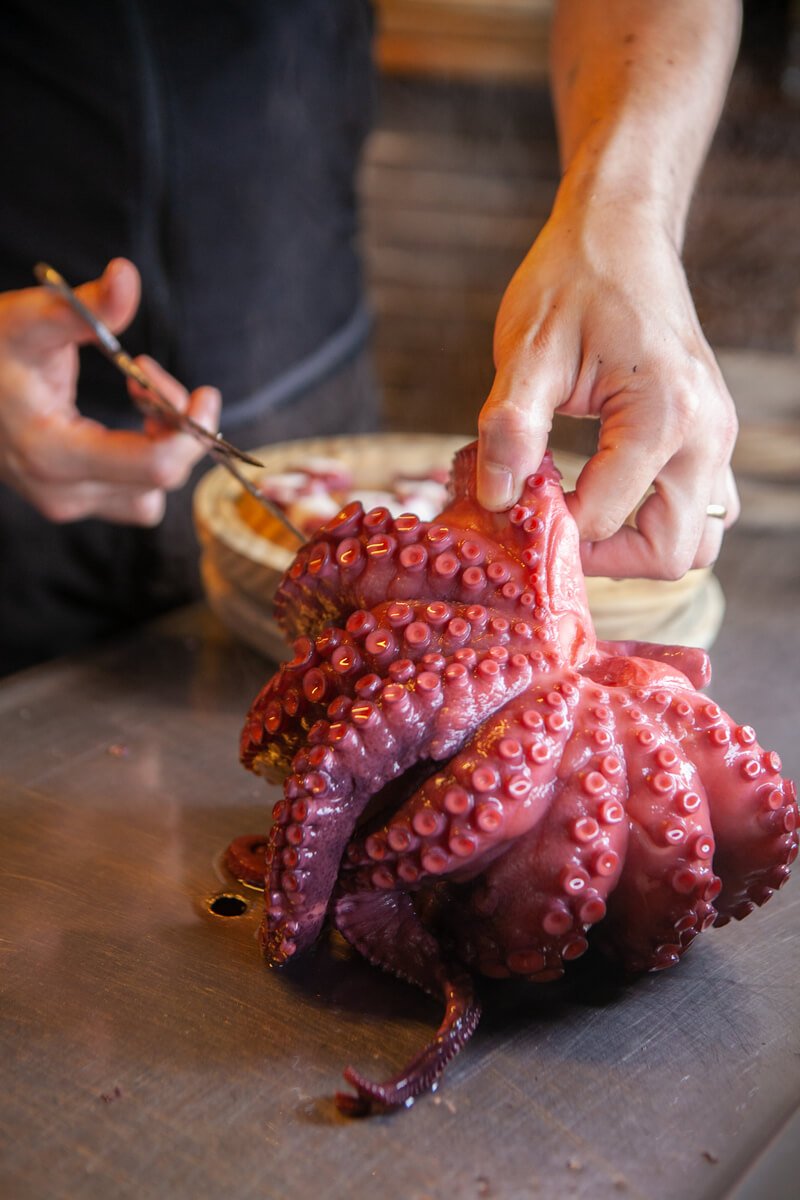 Ale odpowiednia przyprawa to nie jedyna tajemnica dobrej ośmiornicy. Ważne jest też podanie jej na drewnianej desce, która zapewnia odpowiedni smak.