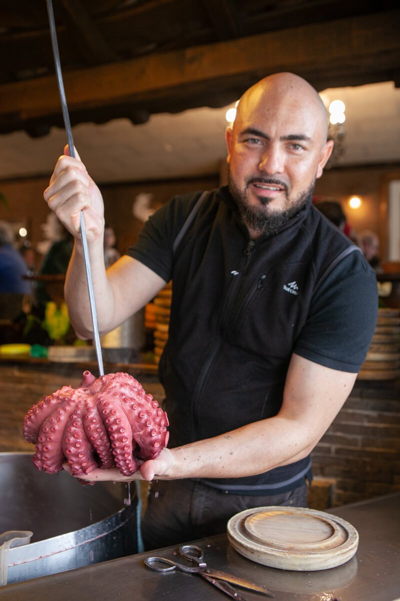 Już dziesięć lat to robię – mówi Sergio, pulpeiro z lokalu Garnacha w galisyjskim Melide i z wielkiego gara wyciąga na haku ugotowaną ośmiornicę. Choć nie pochodzi z Galicii, ale z dalekich Karaibów, tutejsza ośmiornica to jego wielka pasja. Sztukę jej przygotowania doprowadził do perfekcji. Szybkimi ruchami rozcina macki nożycami i tnie je na drobne kawałki.