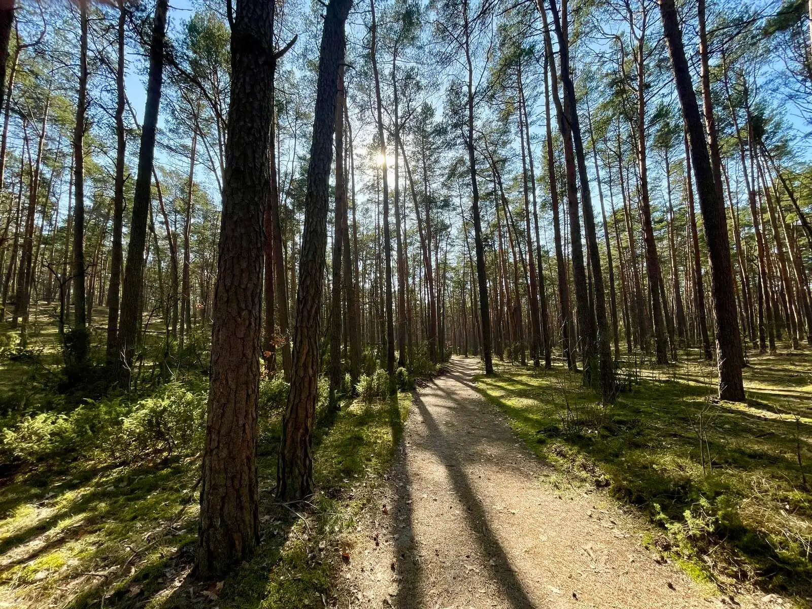 Dziesięć kilometrów. Pętla wijąca się po wschodniej stronie Puszczy Kampinoskiej. Zaczynająca się i kończąca w Truskawiu, do którego w weekendy ściąga pół Warszawy, bo dojazd jest niezły, a parking pozwala zostawić swobodnie samochód.