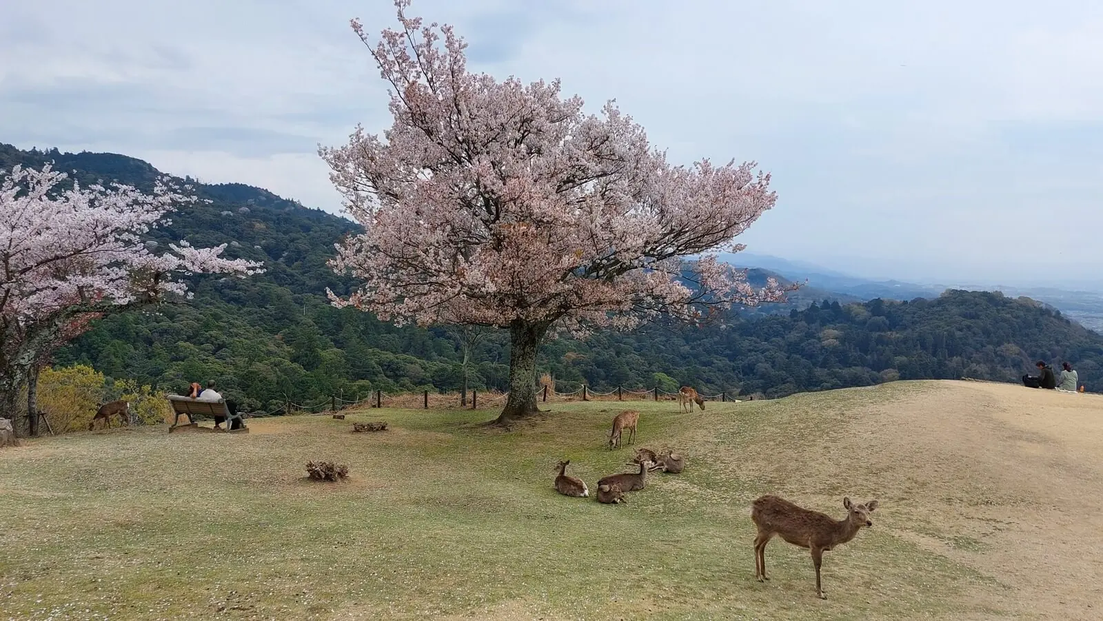 Na wzgórzu Wakakusayama dostrzegamy widok, który sprawia, że na chwilę milkniemy. Przestrzeń, światło, drzewa w końcówce kwitnienia — wszystko układa się w kompletny, efemeryczny obraz, który towarzyszy naszej dalszej podróży.
