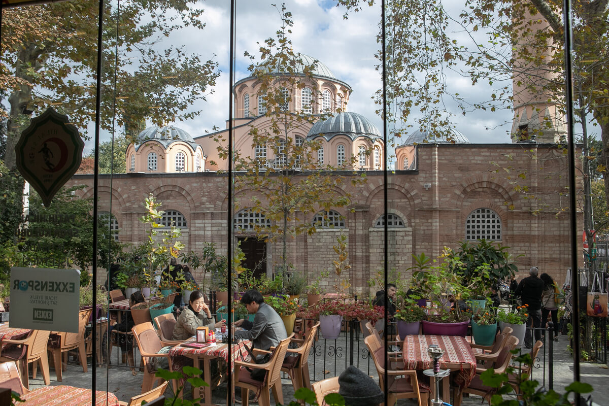 Z zewnątrz wygląda niepozornie – ot nieduża ceglana budowla. Otaczają ją tradycyjne, drewniane domy, z których część chyli się ku upadkowi. Mam czas, by przyjrzeć się okolicy – kiedy docieram do Chory, trwają akurat modły i turyści muszą poczekać na zewnątrz. W restauracji tuż obok kościoła zamawiam pyszną i niedrogą pide, „turecką pizzę” oraz herbatę. Rozmiar lokalu sugeruje, że w sezonie może tu być sporo ludzi, ale teraz oprócz mnie jest tylko para Hiszpanów.