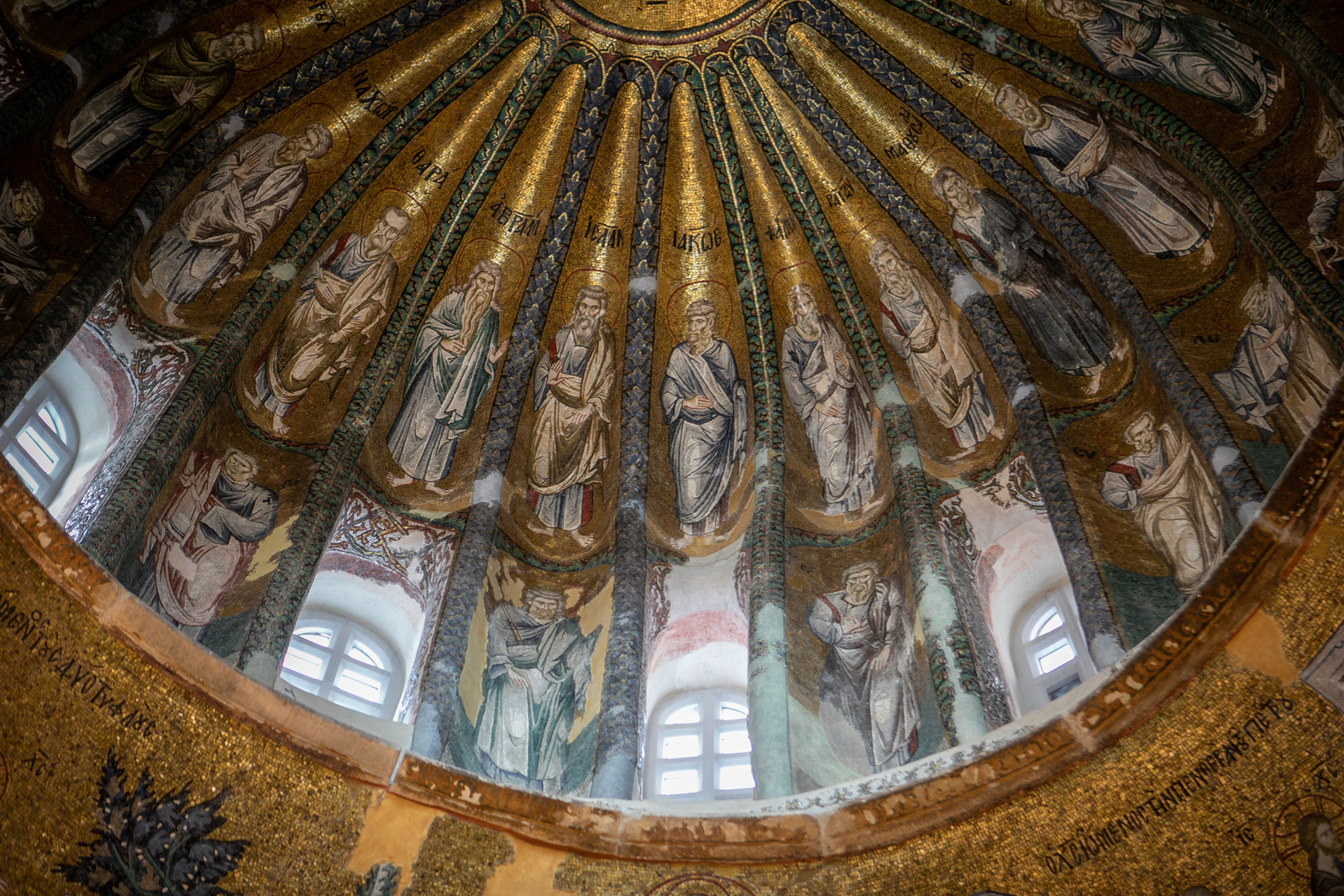 Mozaiki i freski, odrestaurowane w połowie XX wieku lśnią bogactwem i złotem, jednocześnie sprawiając wrażenie eleganckich i misternie wykończonych. Zachodzę w głowę, jak te liczne przedstawienia świętych, Marii, Jezusa i Teodora Metochity nie przeszkadzają dziś muzułmanom w modlitwach. Ale wygląda na to, że to dwa światy, które się nie przenikają. Stosunkowo skromna część, gdzie wierni przychodzą się modlić i kapiąca od złota i zdobień część, gdzie z Absolutem obcują turyści.