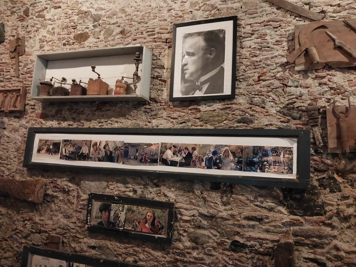 Nawet saszetki z cukrem przyozdobione są tu motywem „z Ojca chrzestnego”. Na ścianach wisi mnóstwo zdjęć z planu. W miejscu, w którym siedział filmowy Michael, ustawiono krzesło, by każdy mógł zrobić sobie zdjęcie.