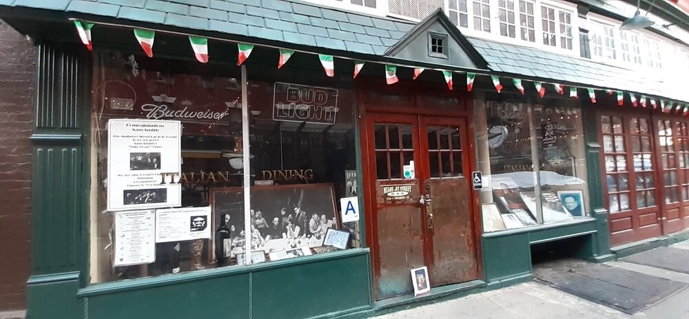 Finał pierwszej części „Ojca chrzestnego” to słynna scena, kiedy Michael zostaje Ojcem Chrzestnym. Wydarzenie miało miejsce w Katedrze św. Patryka, która mieści się przy Mulberry Street. Kościół wciąż działa i można go zobaczyć. Niestety trudniej o zwiedzenie Mulberry Street Bar, gdzie kręcono trzecią część filmu (ale też „Donniego Brasco” czy „Rodzinę Soprano”), lokal jest od dłuższego czasu zamknięty. Udało mi się jedynie zrobić kilka zdjęć gabloty.