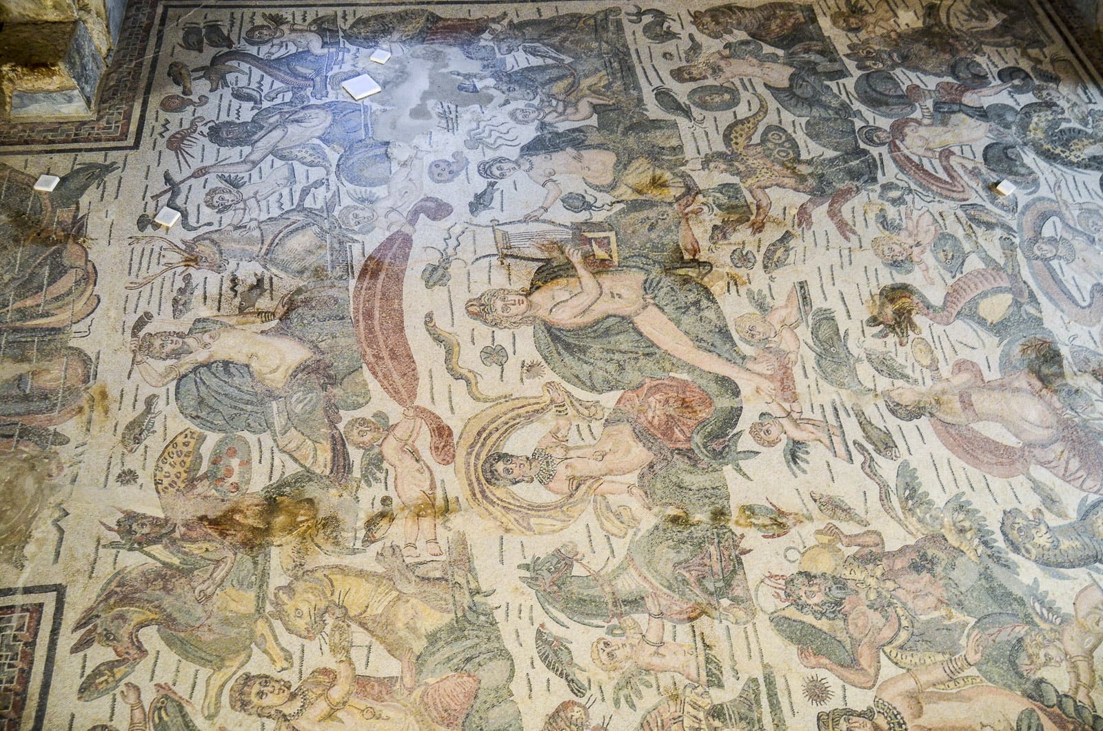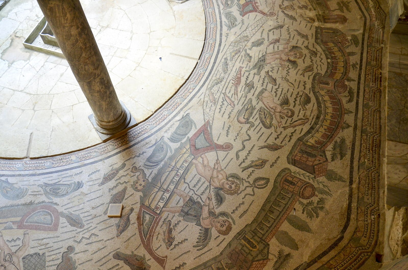 Podłogi głównego budynku kompleksu są wyłożone mozaikami. Dzięki szczęśliwemu zbiegowi okoliczności – naturalnemu osuwisku i zasypaniu terenu zwałami ziemi – dotrwały one do naszych czasów niemal nienaruszone. To ewenement na skalę światową. Brama do przeszłości pozwalająca spojrzeć na świat, który już dawno przeminął.