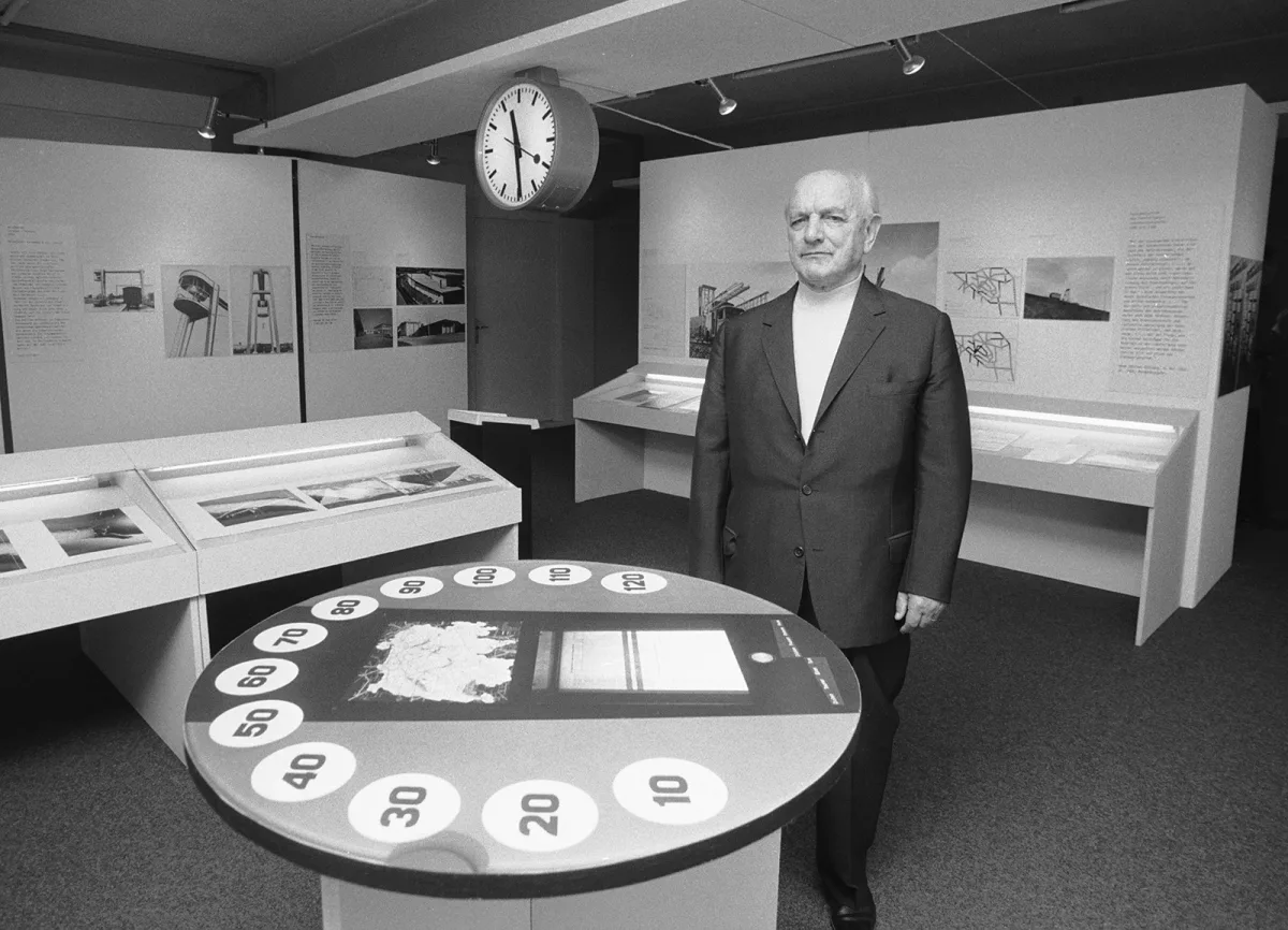 Hilfiker, zatrudniony w SBB, otrzymał ambitne zadanie stworzenia zegara dworcowego, który miał być na tyle funkcjonalny, by pomóc zorganizować cały system rozkładu jazdy kolei. Przy okazji liczono także, że stanie się jednym z symboli kraju. Projektant, inspirując się modnymi wówczas pomysłami Bauhausu, postawił na minimalizm. Zrezygnował z typowych zdobień i maksymalnie uprościł cyferblat, likwidując cyfry i zostawiając białą podświetlaną tarczę oraz czarne wskazówki. W 1955 roku dodał smukły, czerwony miernik upływających sekund, wzorowany na lizakach kontrolerów ruchu kolei.